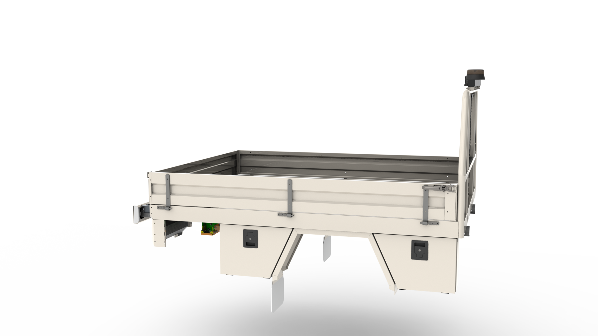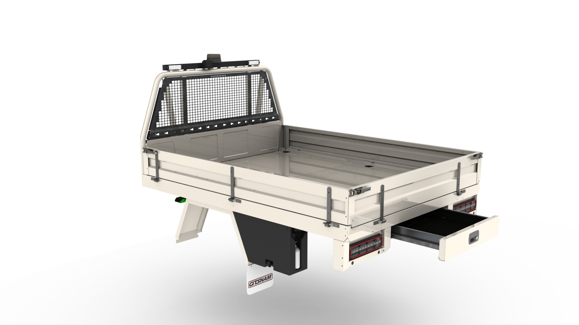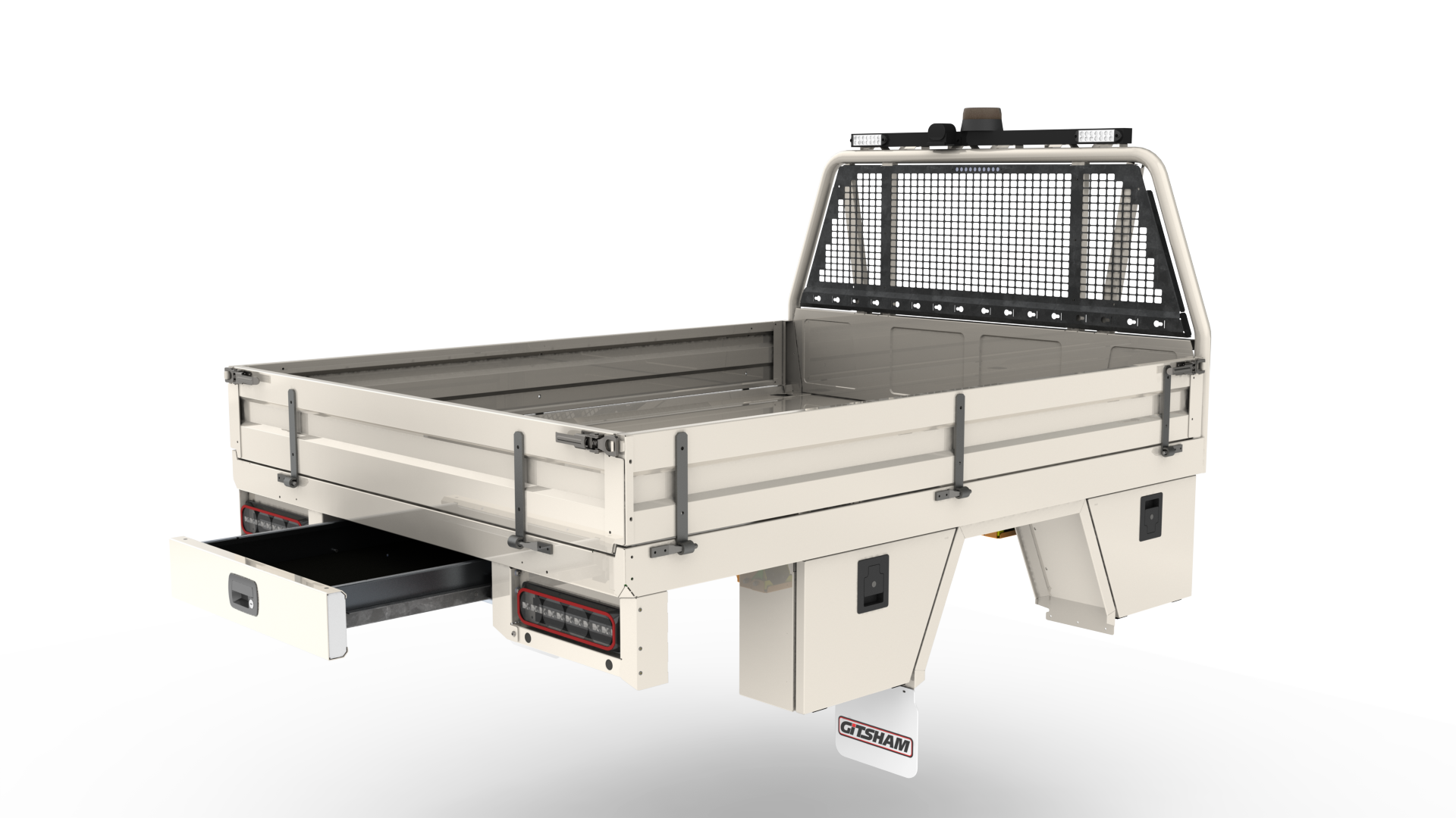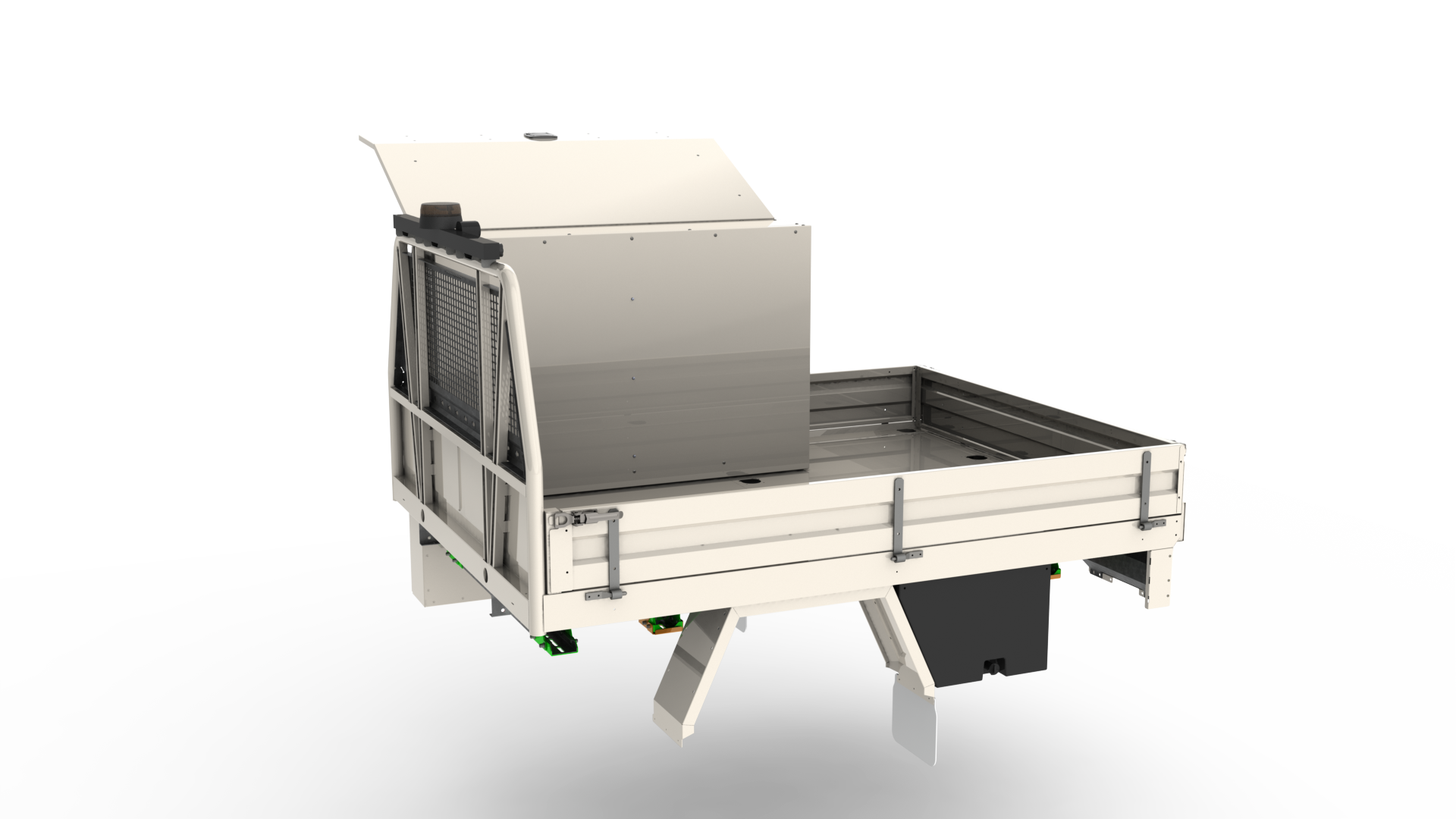 Featuring fully powder coated steel protection, anti-slip heavy-duty floor, integrated mesh barrier, and dual lashing rails – built for the harshest conditions.